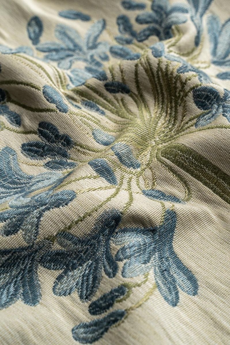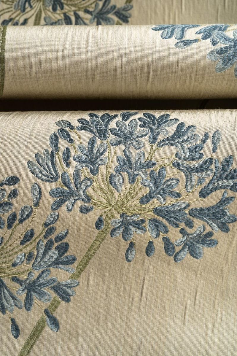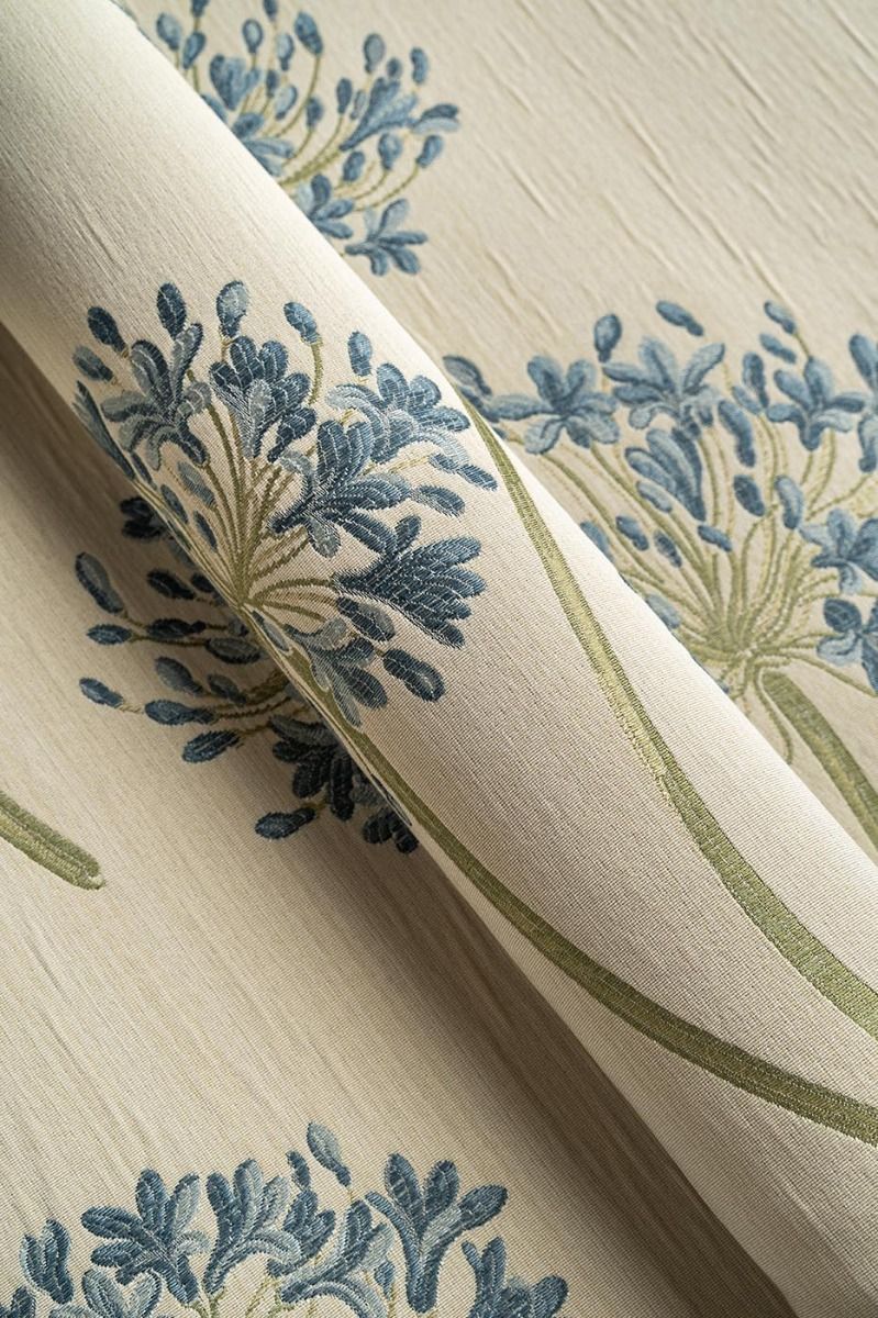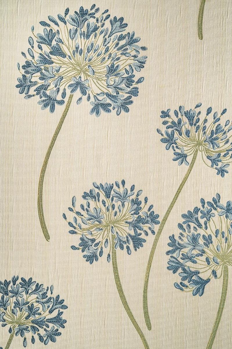 Elegant, graceful floral in delightful blue with tones of creams and greens. This versatile fabric is ideal for curtains, roman blinds and loose covers. Mix and match this with Agapanthus Blue Small Flower and Stripe to enhance any room in your home.