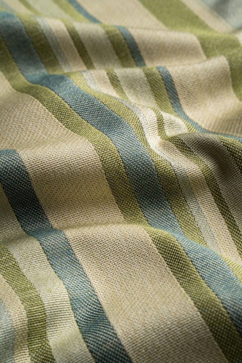 Elegant, graceful stripe in delightful blue with tones of creams and greens. This versatile fabric is ideal for curtains, roman blinds and loose covers. Mix and match this with Agapanthus Blue Large and Small Flower to enhance any room in your home.