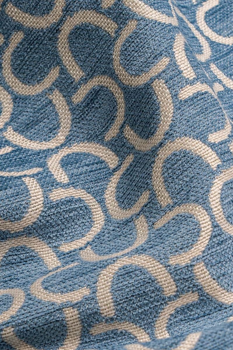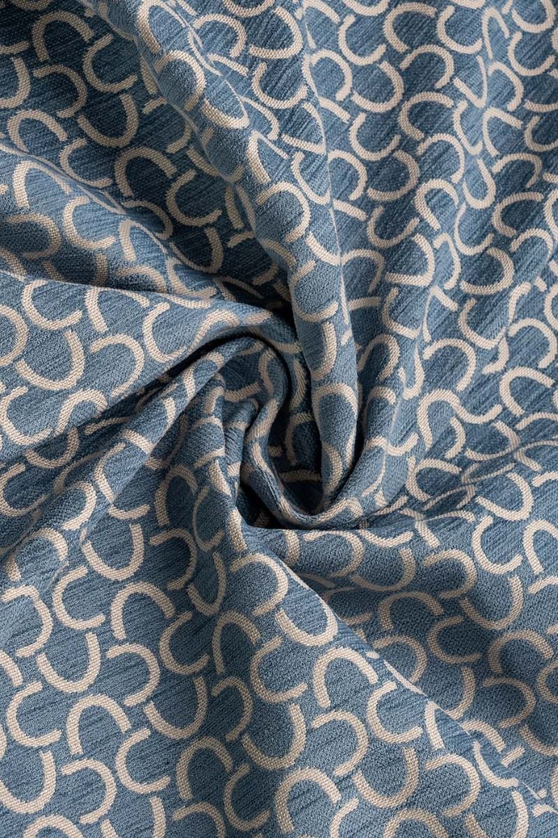 Our Aria Arc Blue fabric showcases a visually striking arc design in silver against a rich blue backdrop. This modern colour combination effortlessly blends cool tones with a contemporary aesthetic, making it the perfect choice for curtains, Roman blinds cushions and upholstery.