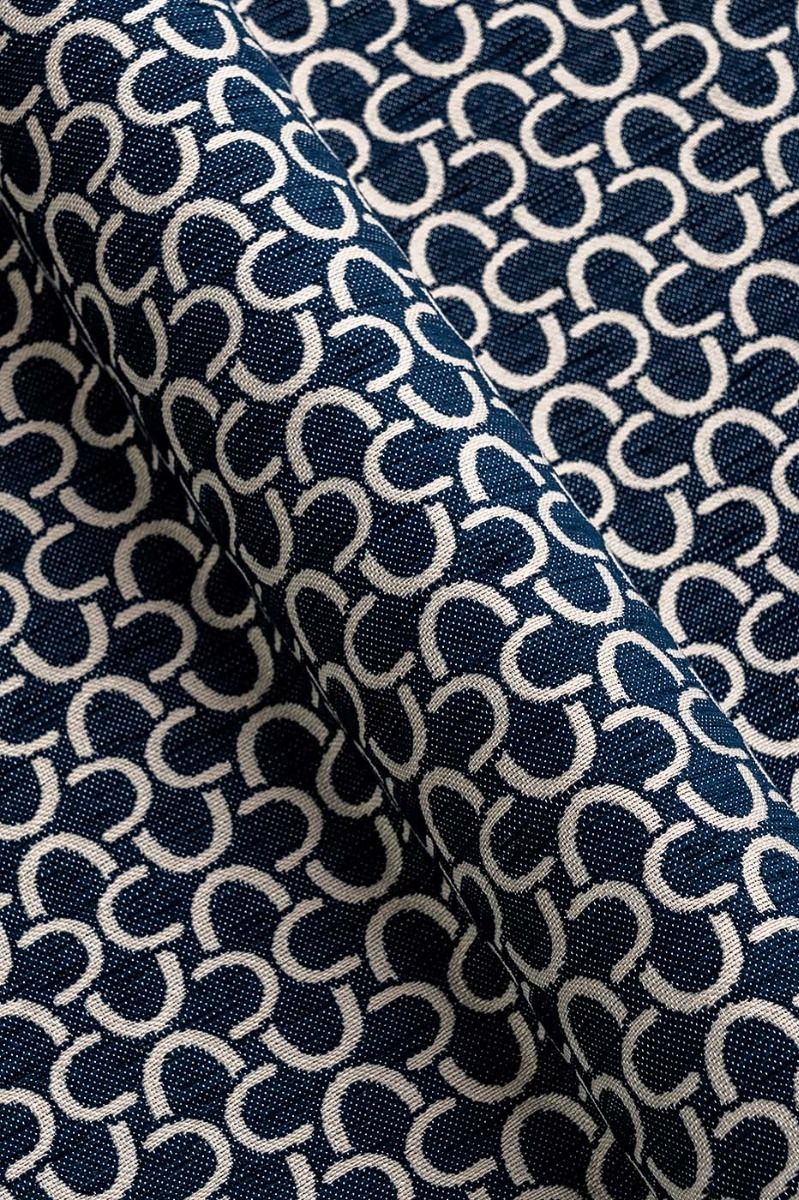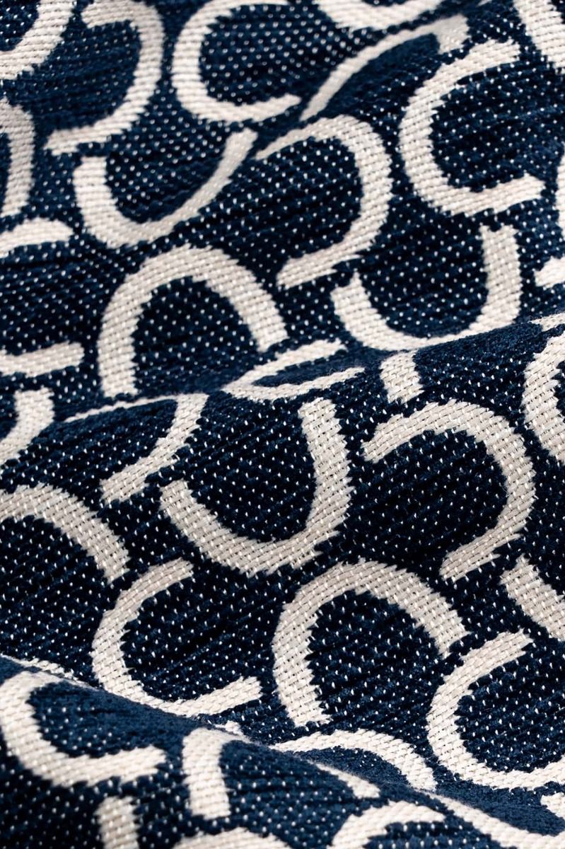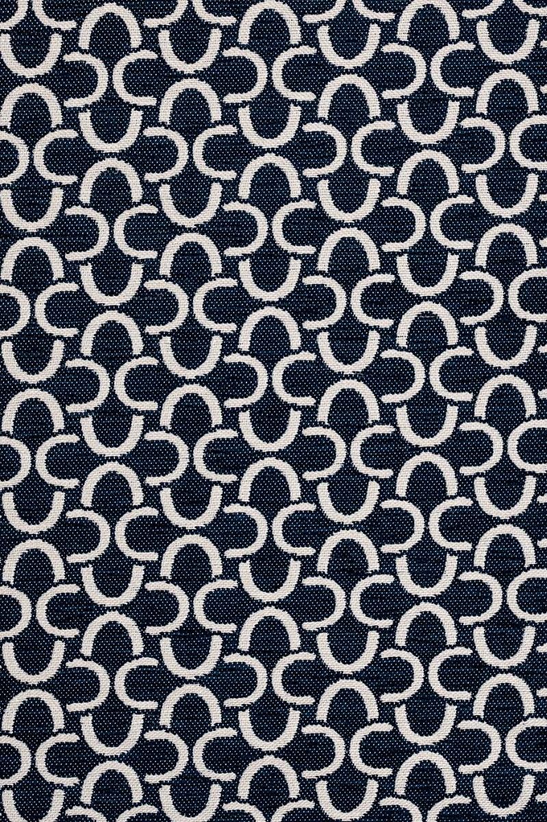 Our Aria Arc Navy fabric showcases a visually striking design with its captivating navy blue backdrop and graceful cream arc pattern. This modern colour combination effortlessly blends deep tones with a contemporary aesthetic, making it the perfect choice for curtains, Roman blinds cushions and upholstery.