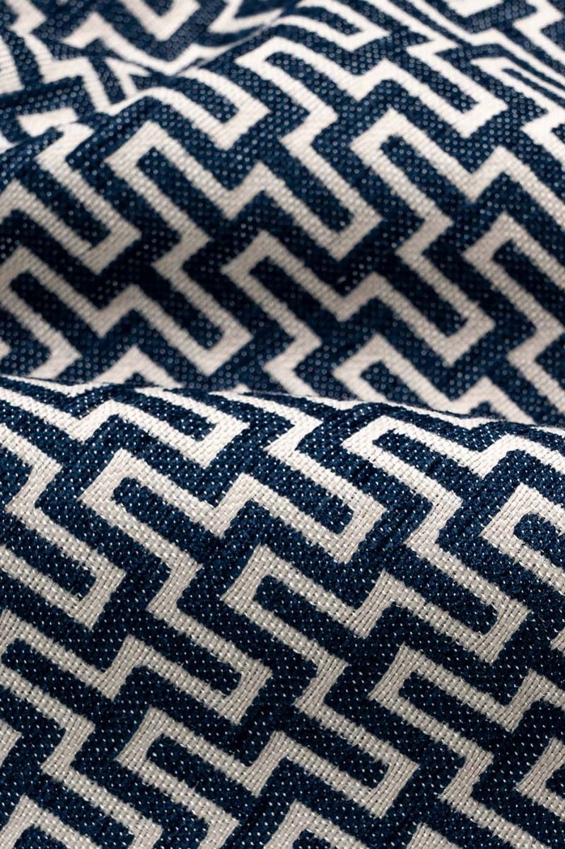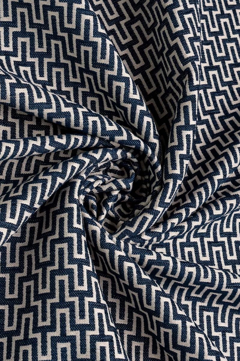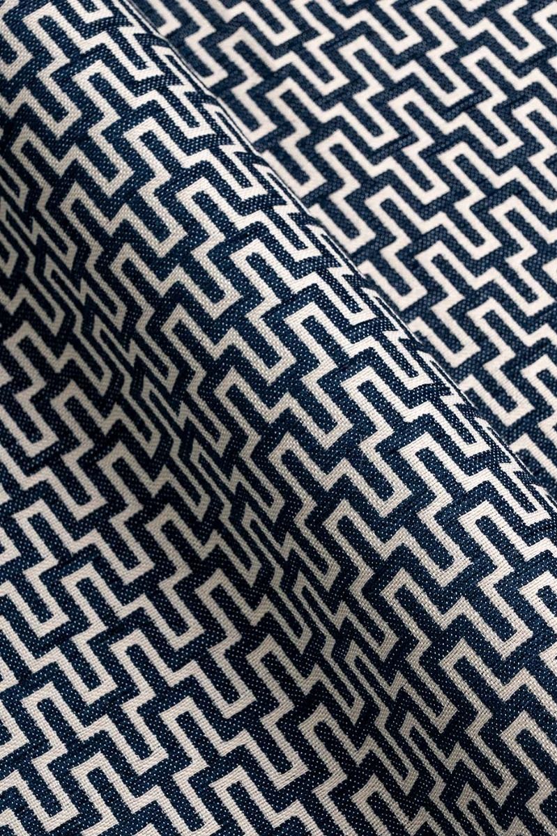 Our Aria Geometric Navy fabric showcases a visually striking geometric pattern in light grey against a rich navy backdrop. This colour combination effortlessly combines classic navy tones with a contemporary aesthetic, making it the perfect choice for curtains, Roman blinds, cushions and upholstery.