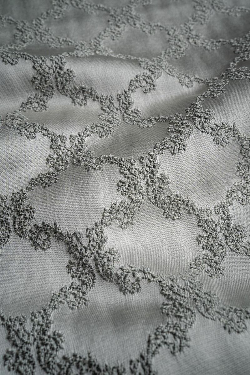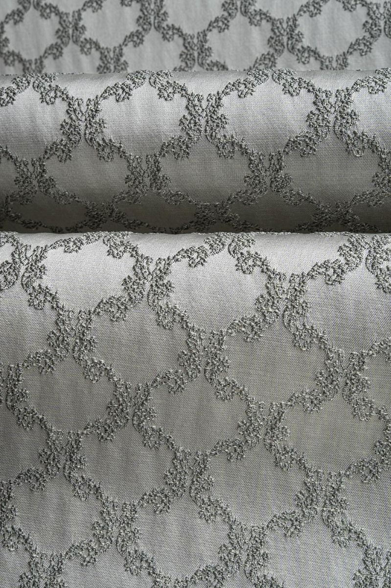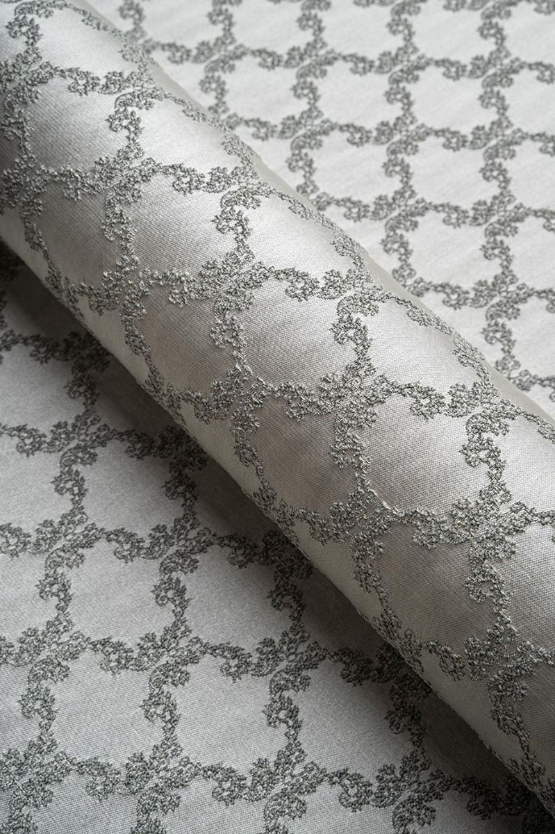 Our gorgeous Ascot Trellis fabric in shades of silver with a green undertone gives a luxurious touch to any room. Ideal for curtains, roman blinds and cusions in your home.