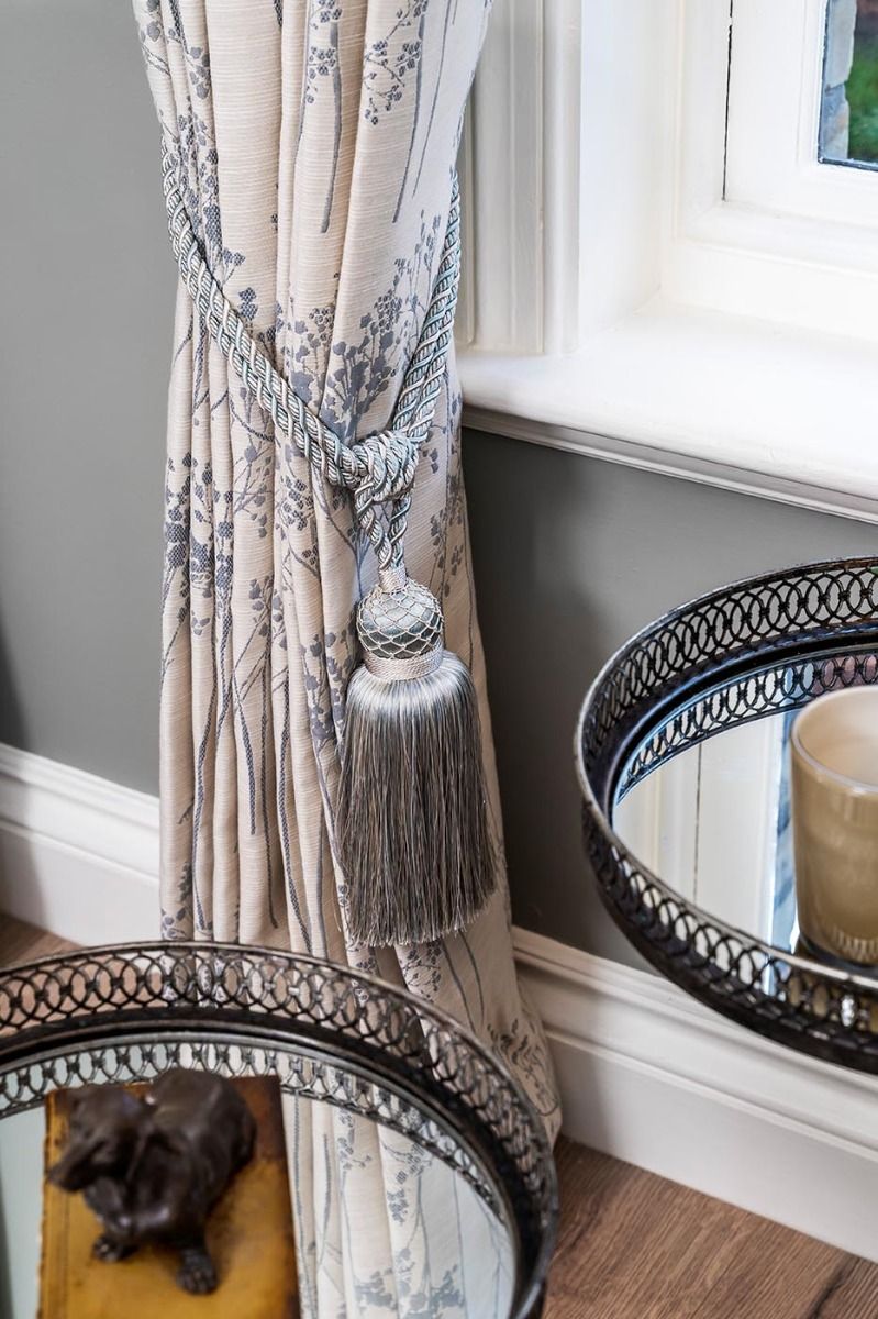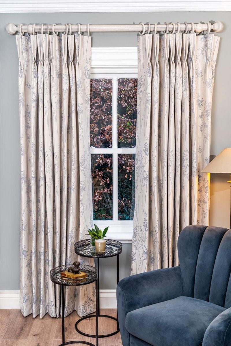 Our Blossom Blue floral fabric is a fantastic choice. The off-white and wedgewood blue bring a peaceful ambience. These 90" x 90" curtains are paired with a bonded fleece lining and a modern 8" butterfly pleat. Coordinating tiebacks available. Blossom Blue 90" x 90" is also available with a blackout lining.