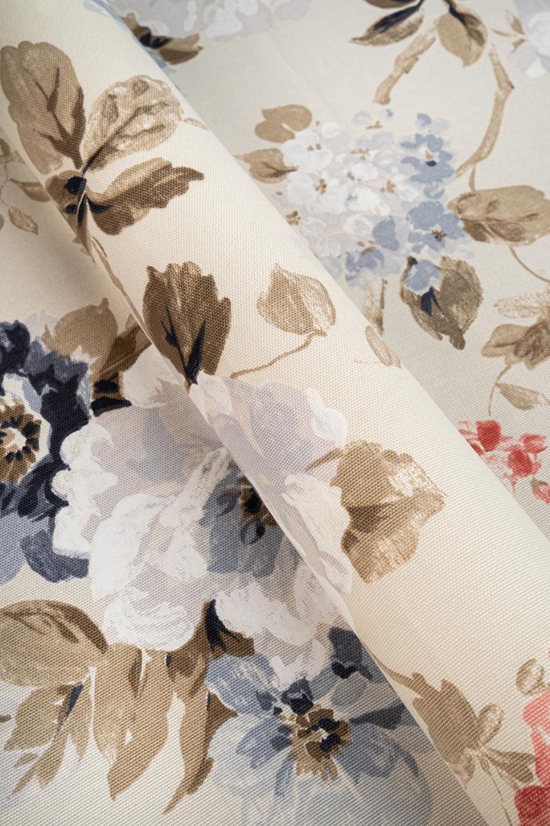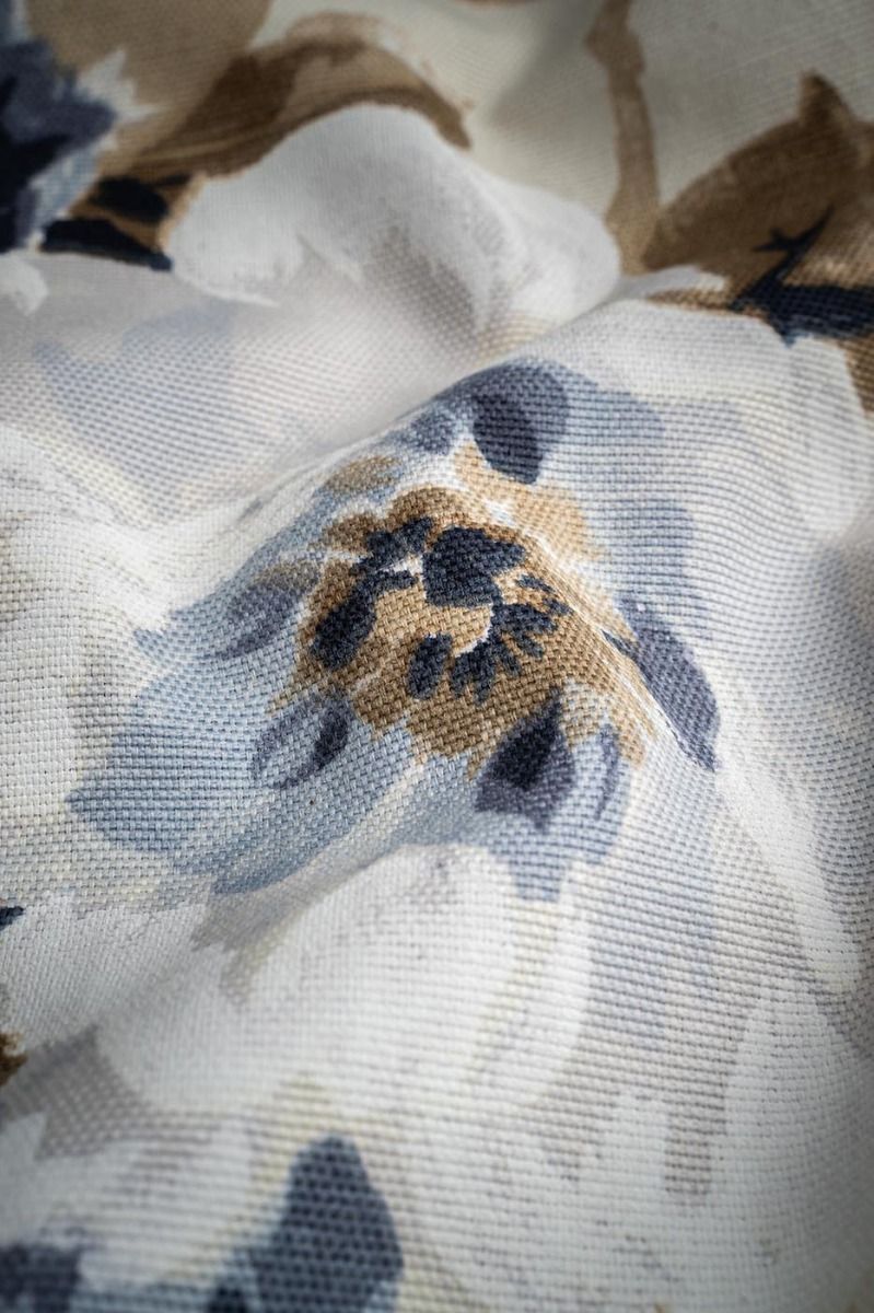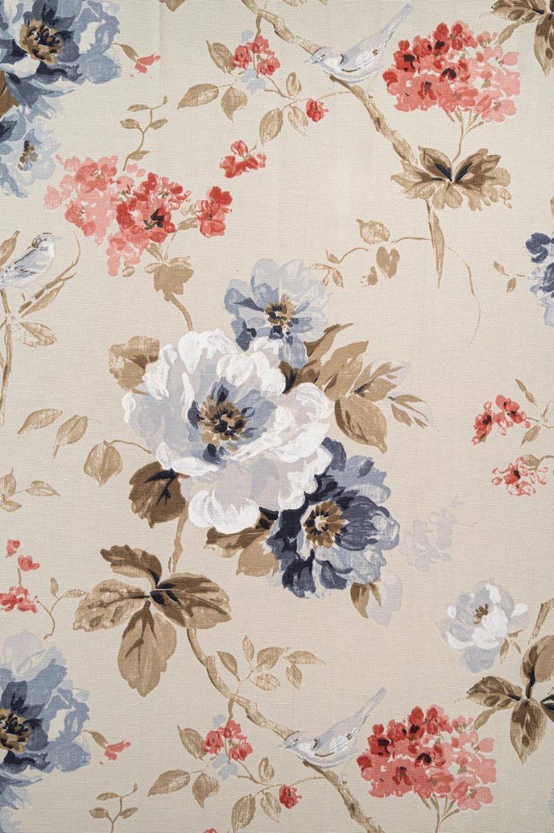 Our beautiful Ambience floral print is a stunning choice for any room. In a pallet of navy and coral, on a soft cream background, this wide width fabric is a great chocie for curtains, roman blinds and cushions.