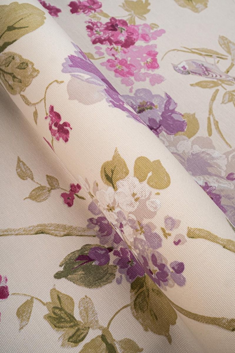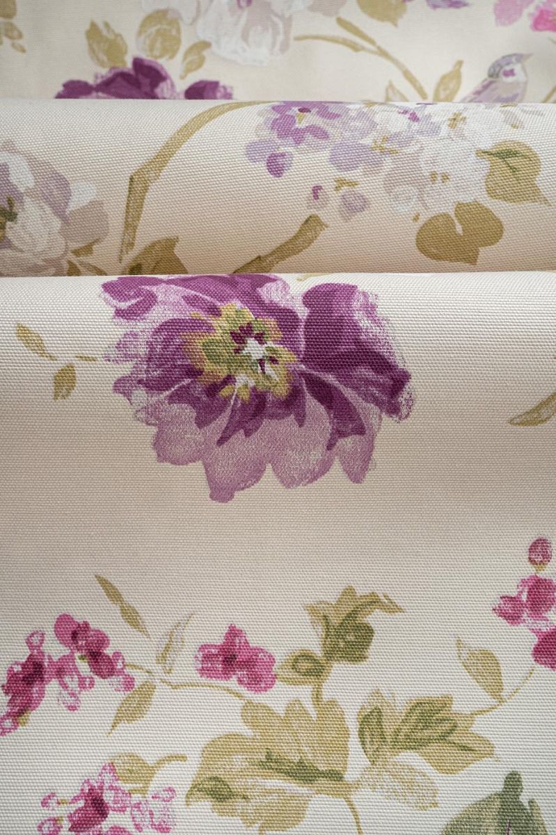 Our beautiful Ambience floral print is a stunning choice for any room. In a pallet of pinks, purples and greens, on a soft cream background, this wide width fabric is a great chocie for curtains, roman blinds and cushions.