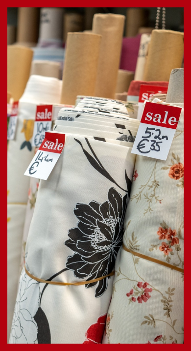 The designer fabrics in our Outlet represent amazing value. Don't delay as once our stock is sold no more will be available!