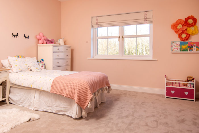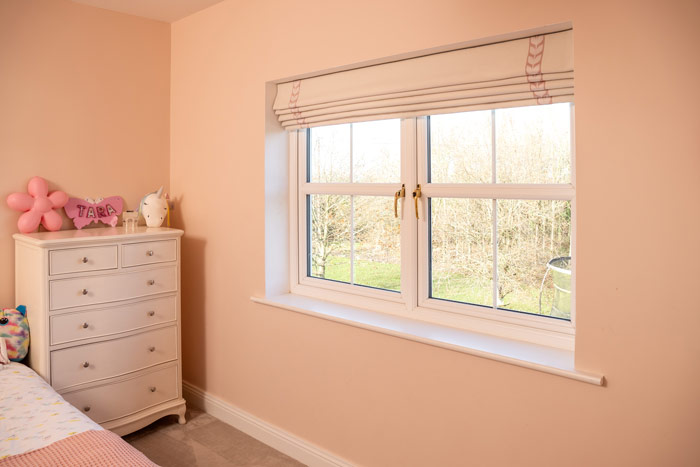 One of her favourite projects has been designing her little girl Tara’s room, her 7 year old daughter’s cosy haven. She has wanted her space to feel warm and inviting, so she chose a Natural Herringbone White fabric for her Roman blind, finished with the Loire Pink braid on either side. It added the perfect touch of texture and warmth to her room.