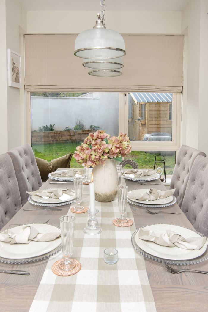 Our collaboration focused on Jess's dining room, a social hub for hosting memorable gatherings. She wanted to create a space with a welcoming atmosphere, perfect for bringing together her family and friends. Recognising the importance of the perfect finishing touch, Jess chose a timeless Roman blind to elevate the ambience of the area.