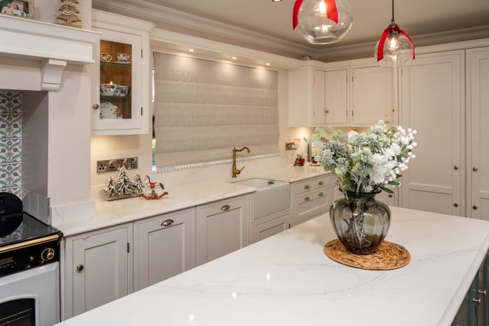Ciara especially liked the Dorset Herringbone Grey fabric and Cream Beaded braid. She thought they worked well together and complemented the interiors in her kitchen. Ciara decided that she would like curtains and braids in this fabric.