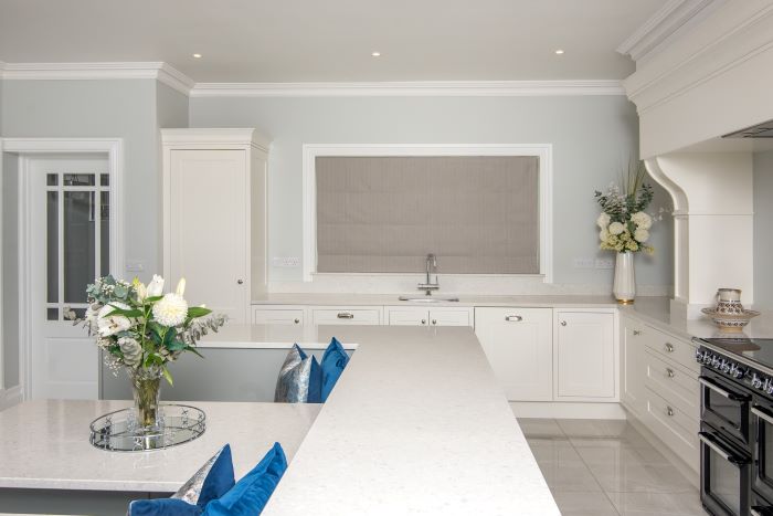 The kitchen, as the heart of their home, needed to be both functional and inviting. Lauren envisioned a space where family gatherings could comfortably take place, requiring soft furnishings that were neutral yet warm, timeless, and harmonious with the home's overall design. Her goal was to find window treatments that complemented the existing kitchen interiors while maintaining versatility for future design changes.