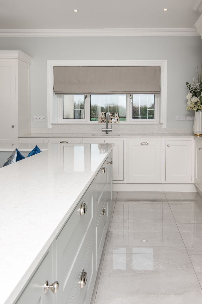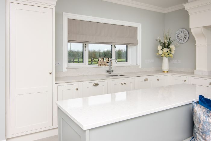 The Roman Blind in Marela Herringbone Two Tone grey fabric became a beautiful and functional addition to Lauren's kitchen. It met her criteria for a neutral yet warm and timeless piece that could adapt to any future interior changes. The high-quality fabric and craftsmanship of the blind added to the overall elegance and comfort of the kitchen.