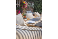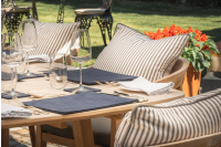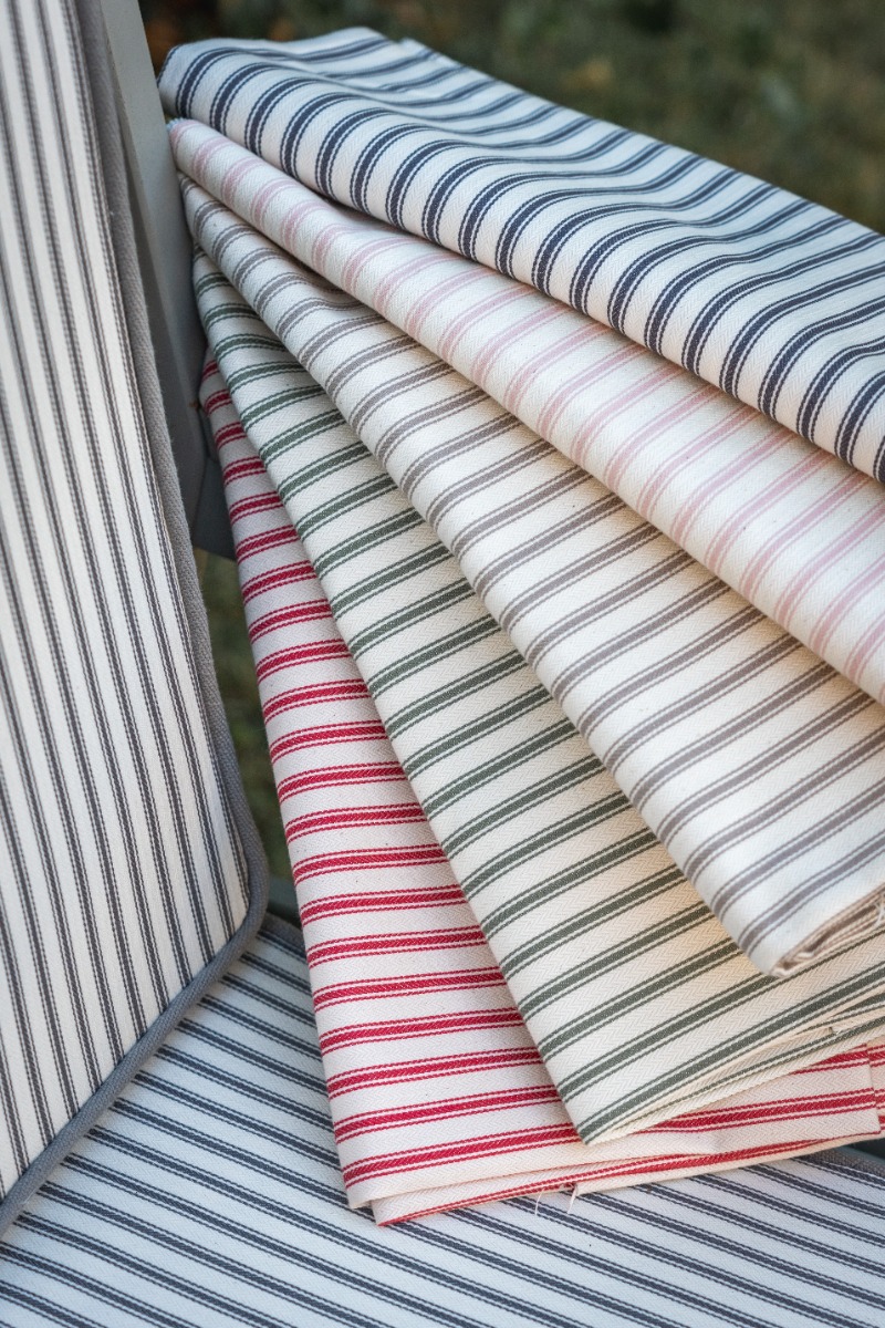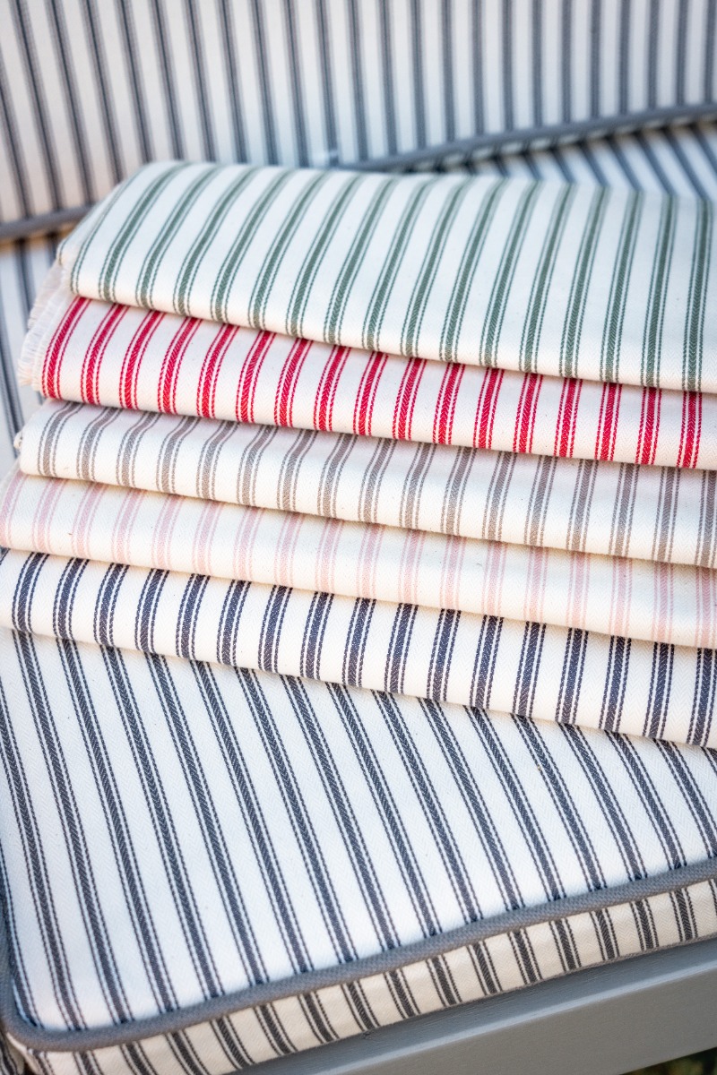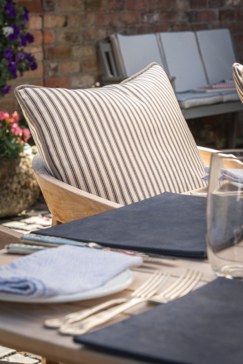 The upholstery fabric used on these cushions is also available for luxury made to measure curtains and roman blinds. The fabric is also available in a range of different colours which is perfect for creating different atmospheres around the table. Neutral tones such as taupe give a more luxurious sophisticated feel whereas the yellow and red shades give a more fresh and uplifting feel to the area. This Ticking range is simple and elegant.