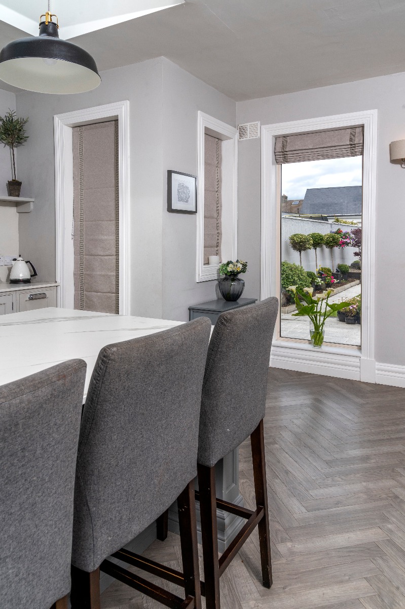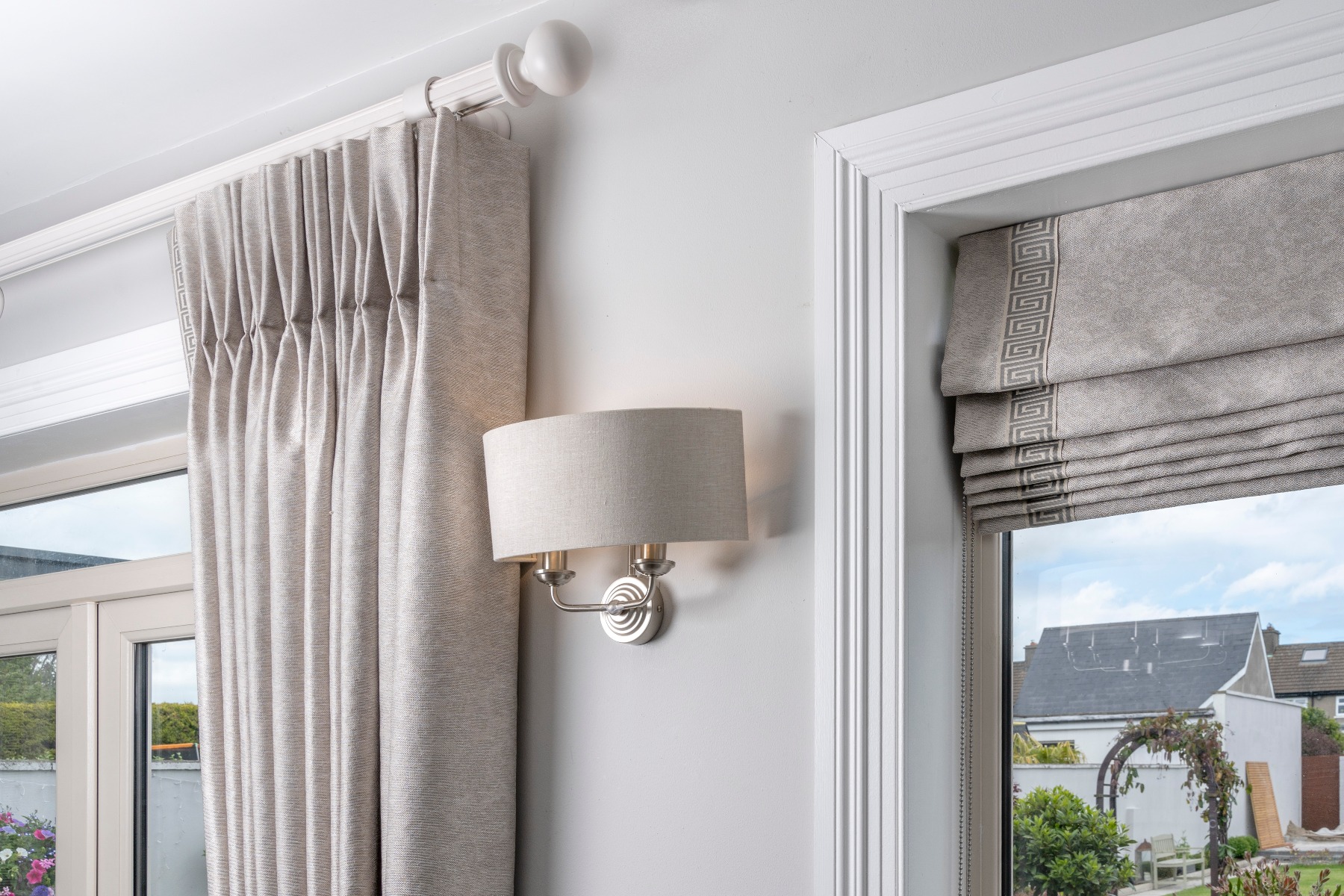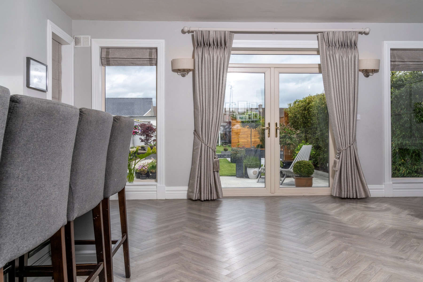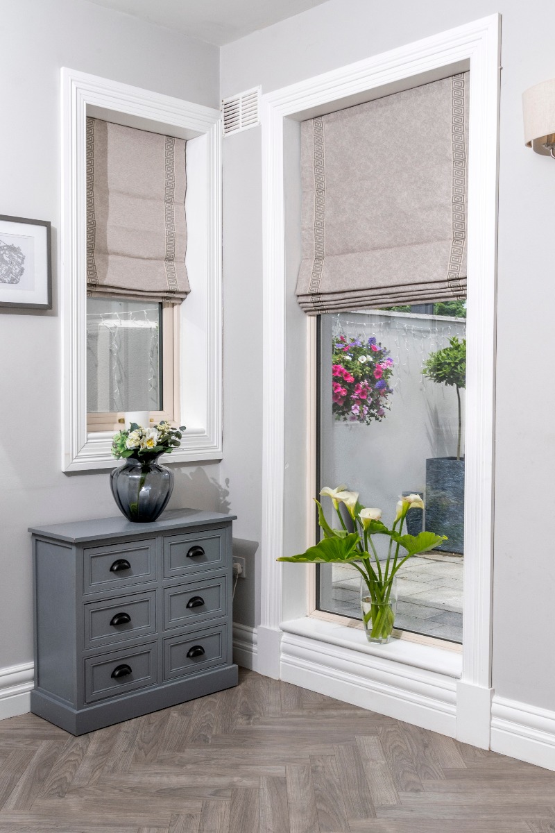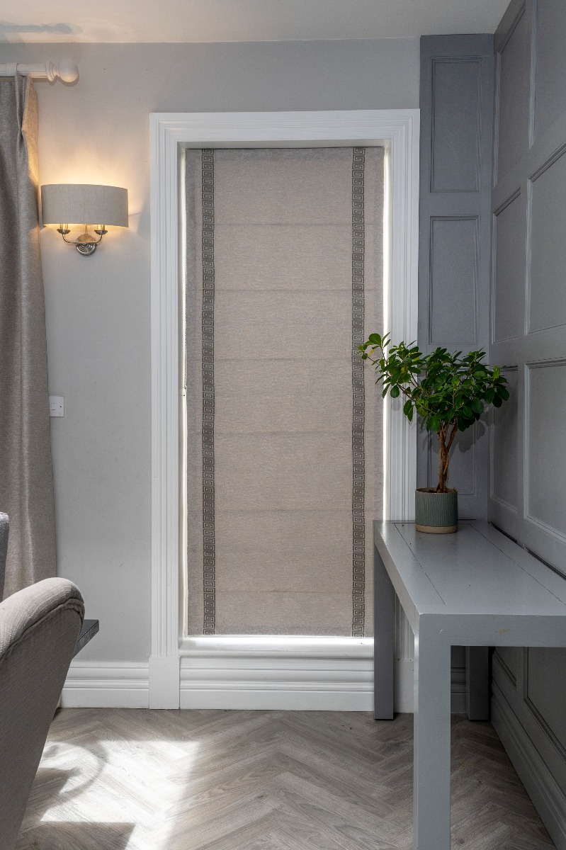Today we are showcasing the latest project completed for one of our clients. As you can see our Curtains and Roman blinds accentuate the existing color scheme of the kitchen area. In particular, our luxurious curtains frame the garden and invite the viewer to look out onto the beautifully landscaped garden. The roman Blinds bring a touch of elegance to complete the room. They create the sense of more space in the room by keeping the window frame clear as otherwise with curtains it would remain hidden.