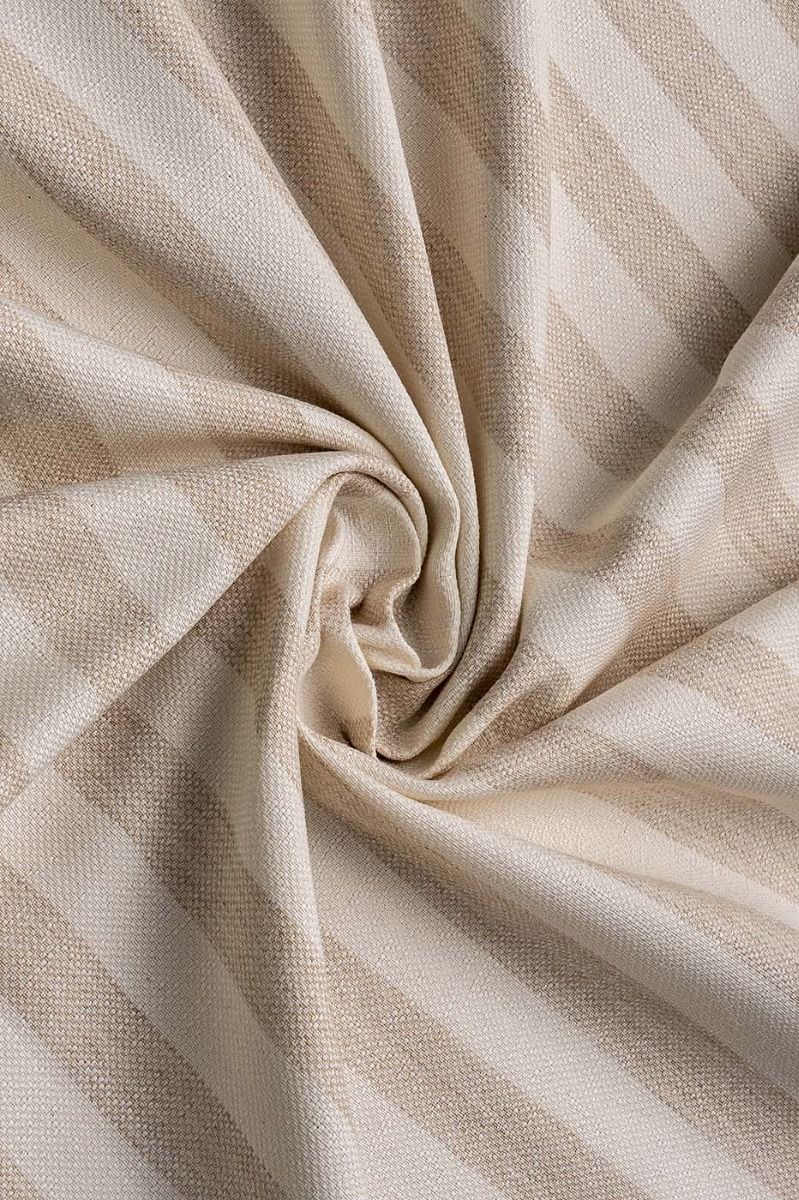 Our Kingston Natural Stripe fabric showcases wide stripes in a harmonious combination of light beige and cream. This classic colour palette effortlessly blends with various interior design styles, from traditional to modern, adding a touch of understated luxury to any space.