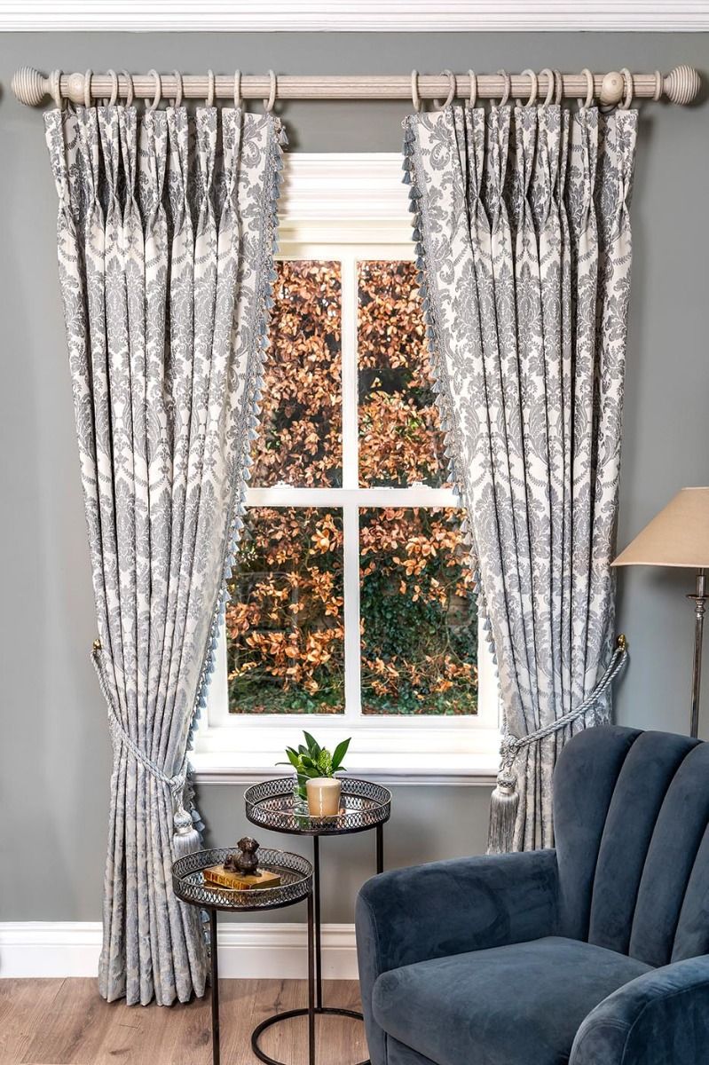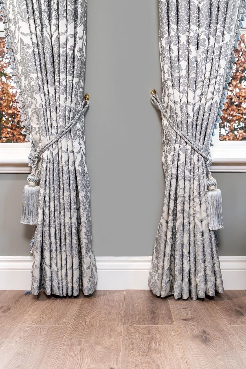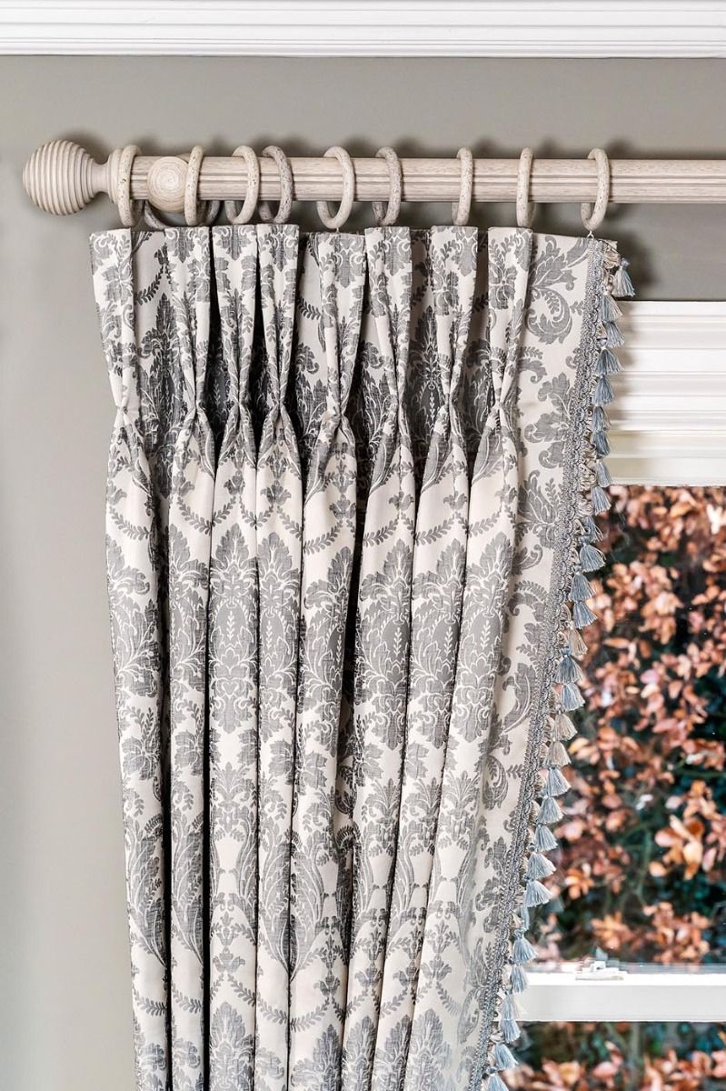 Emily Duckegg Damask is one of our most popular fabrics. Emily drapes beautifully and has a lovely soft handle. These 90" x 90" curtains are paired with a bonded fleece lining, a modern 8" butterfly pleat and a macthing hand tied fringe to add a touch of luxury to any room. Coordinating tiebacks available. Emily Duckegg Damask 90" x 90" is also available with a blackout lining.