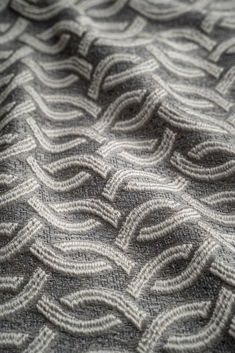 This small geometric design on a matt grey cloth makes a modern statement for any home. Use for roman blinds, curtains and cushions to enhance your interior space.
